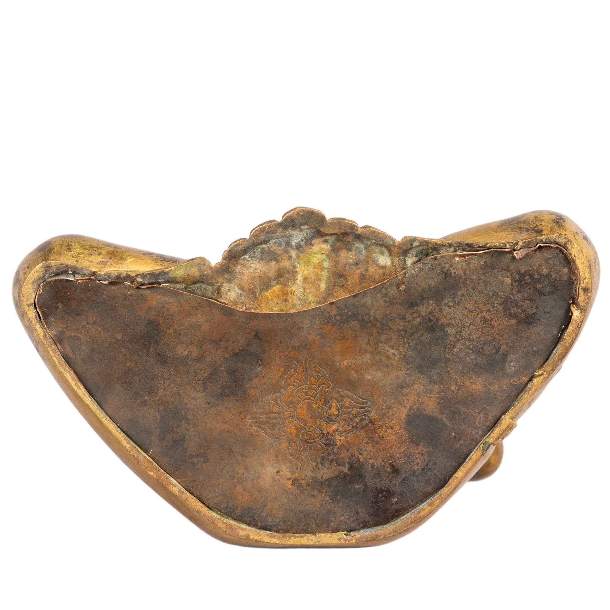 Show MoreThe surface retains a warm gilding, with areas of natural wear revealing the underlying copper, enhancing depth and visual richness. The subtle patina contributes to the antique-style appearance of the piece.