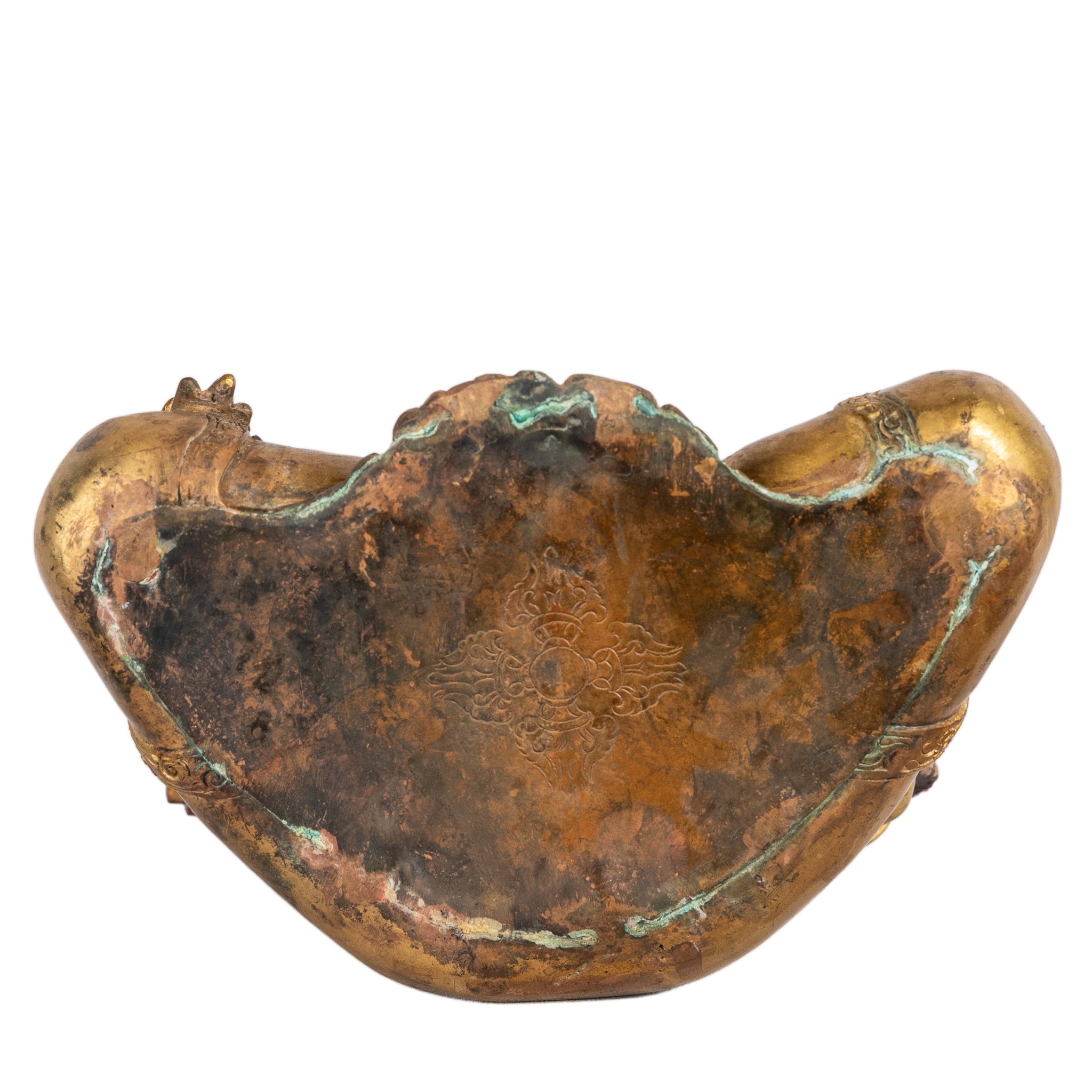 The warm gilded surface, enriched by natural patina and subtle traces of wear, gives the sculpture both presence and authenticity.